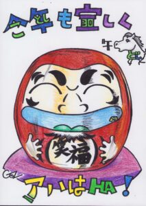 りんご、かき、ぴーまんを下の風呂敷の絵も一緒に描いてくれているところを写真に収めたのですが、その姿も撮られてました!