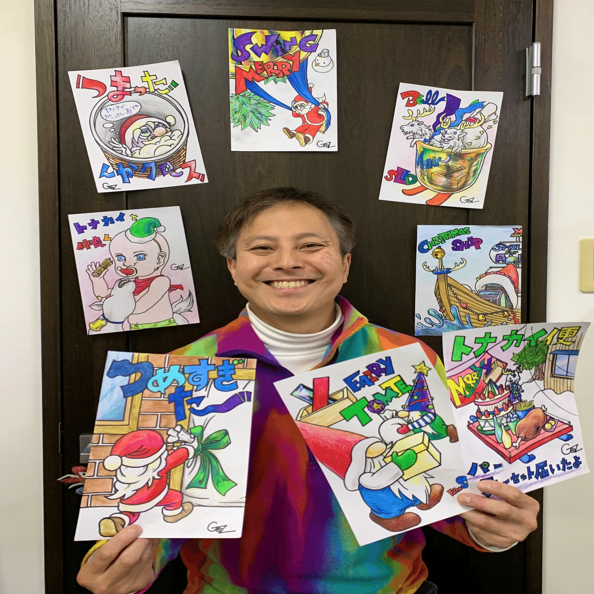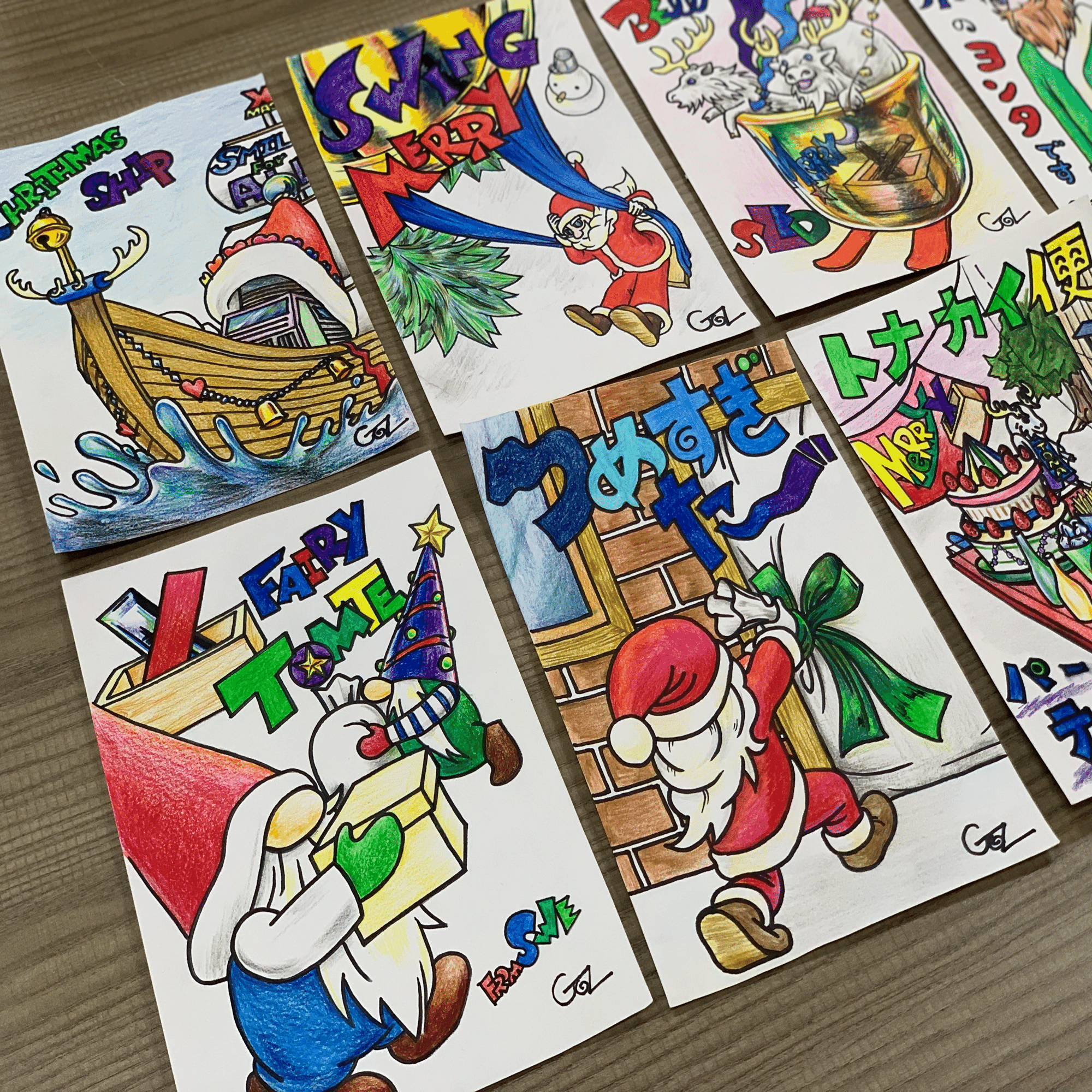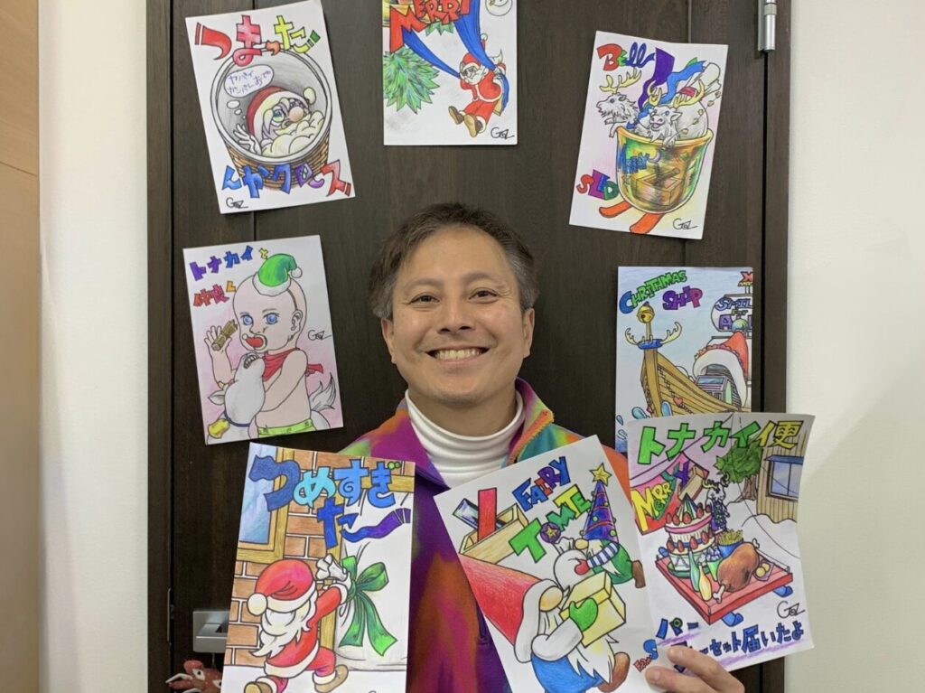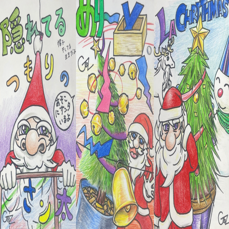 細部まで丁寧に描き込まれた色鉛筆のタッチや、少し不思議で楽しい発想。その一つひとつに、GOsならではの「面白がる心」が詰まっています。誰かと「これ、面白いね」と話したくなるような作品たち。クリスマスという特別な季節に、GOsのアートが、皆さんに笑顔を届けてくれますように。