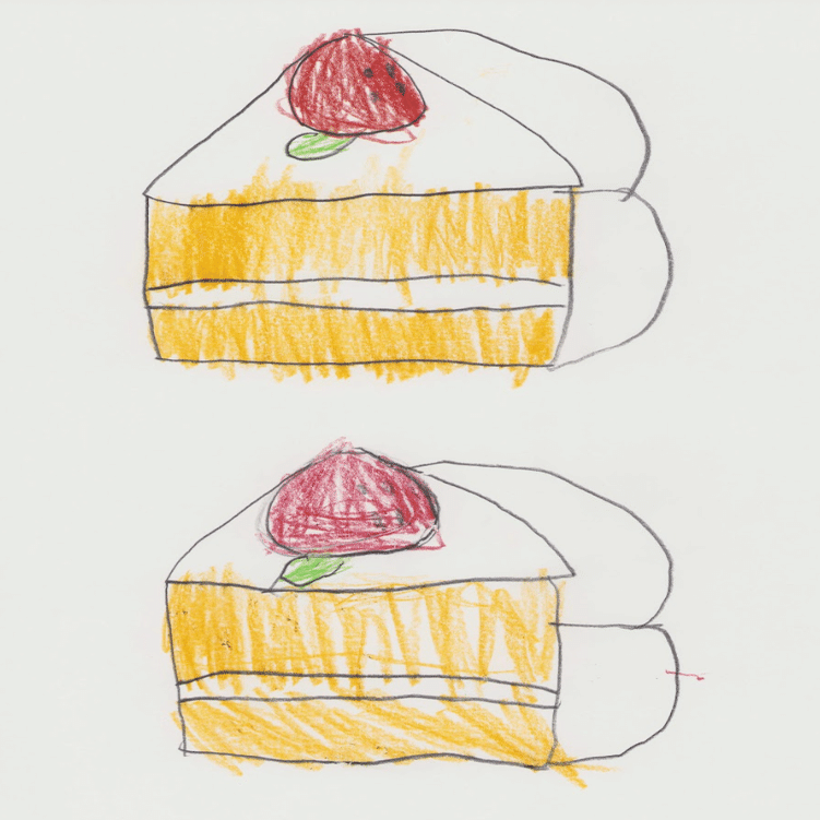 エルちゃんが喜びそうなもの、好きそうなものを思い浮かべながら、いちごやクリームソーダ、そっとかけてあげたい毛布など、やさしくてかわいいモチーフを絵に描いていきます。